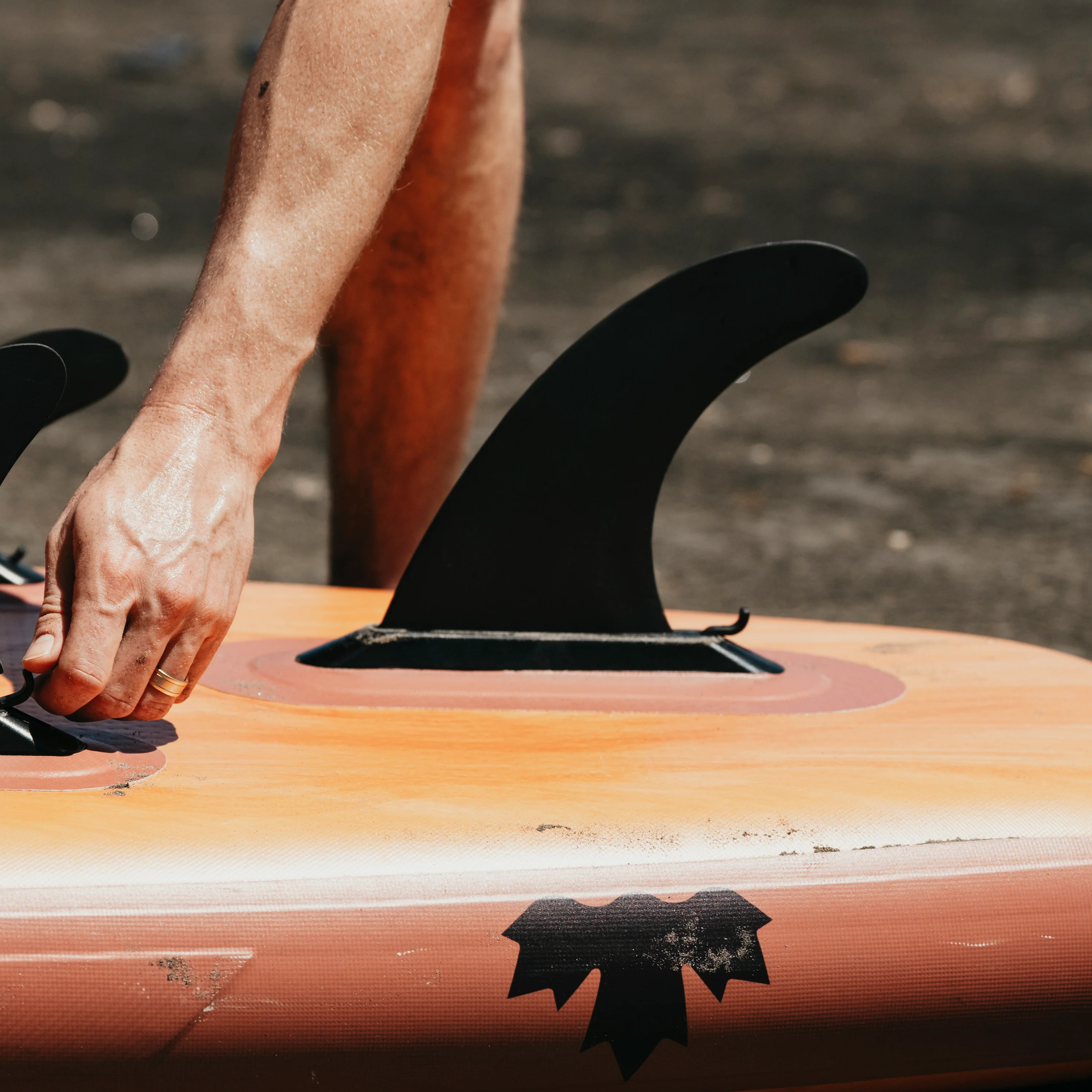 The Float-Eh Quick Clip Center fin is super easy and quick to attach and detach. No tools required. Clip in and you are good to go. The Float-Eh Quick Clip Fin comes standard with all our inflatable paddle board models.